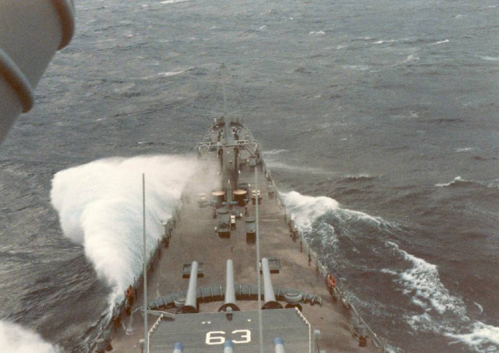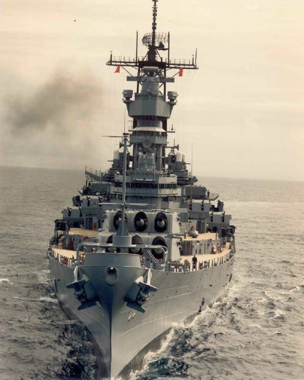 USS Missouri View over bow 2, Australian Sea, Oct 86.jpg