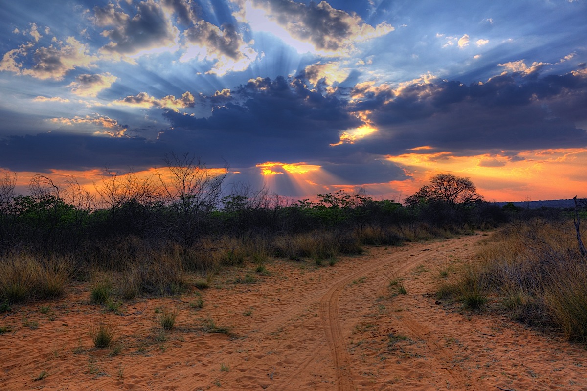 - Crepuscular_rays_at_Sunset_near_Waterberg_Plateau.jpg