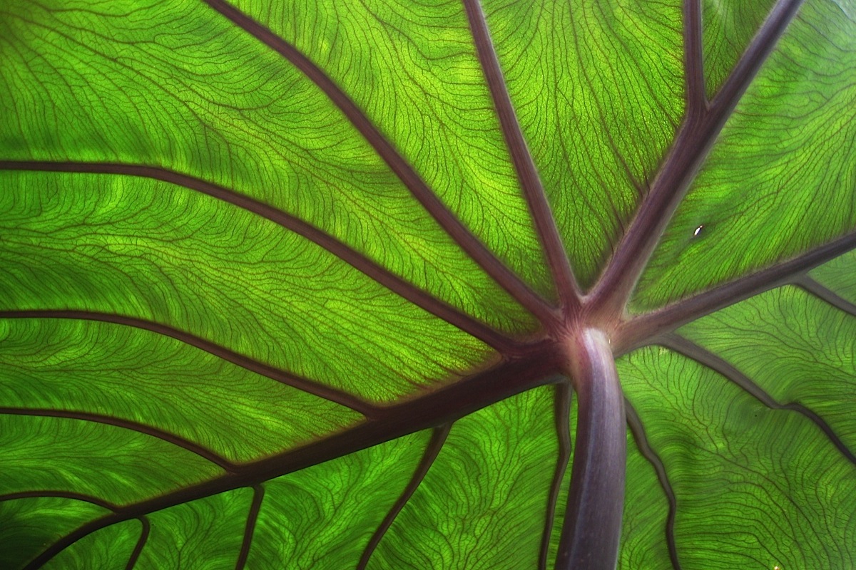 - Taro_leaf_underside,_backlit_by_sun_-_edit.jpg